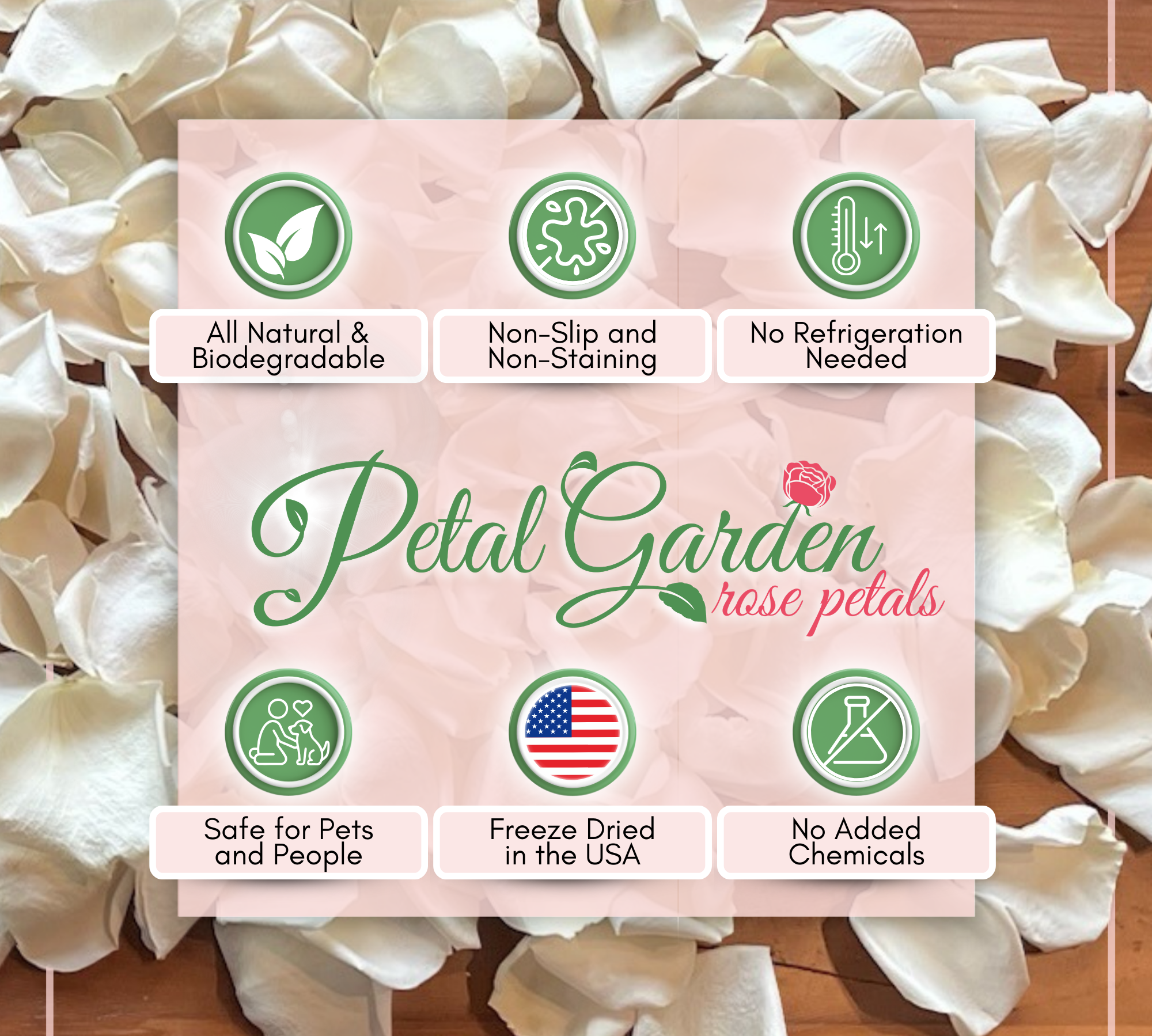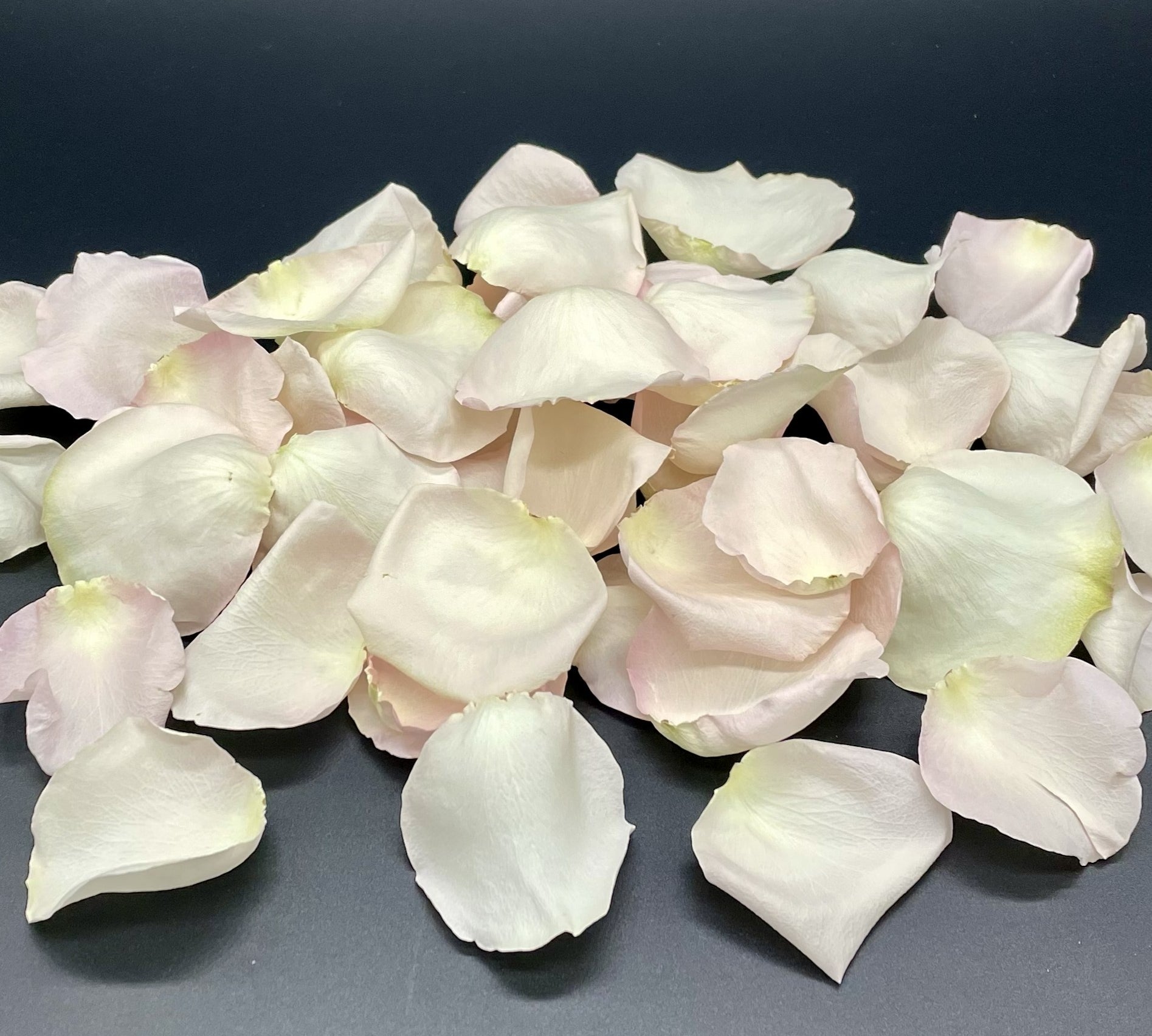 Our Freeze Dried Rose Petals are the absolute best you will find. Carefully handpicked from beautiful South American roses and preserved in our shop in upstate NY, our petals are even better than fresh. Non-wilting and non-staining, these biodegradable ivory rose petals are the most popular, by far!