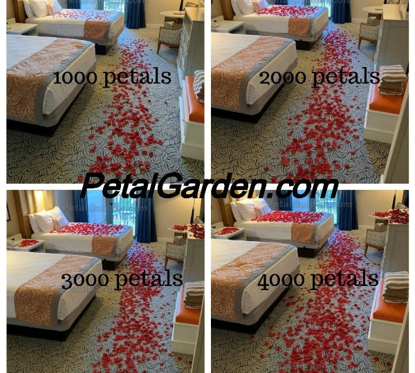 Some of our most popular colors of silk rose petals are available in bulk packs of 1,000 petals.