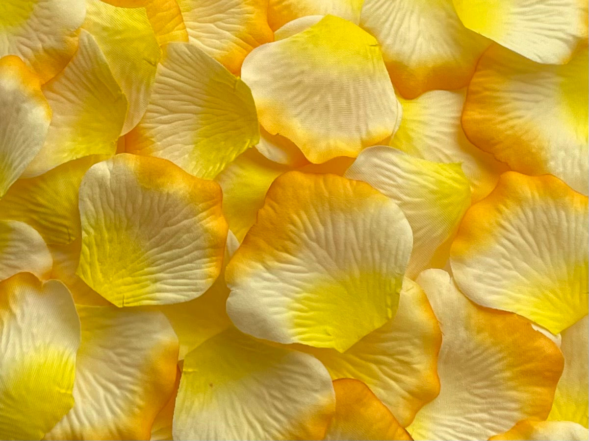 Ivory/Yellow Silk Rose Petals, 100 petals
