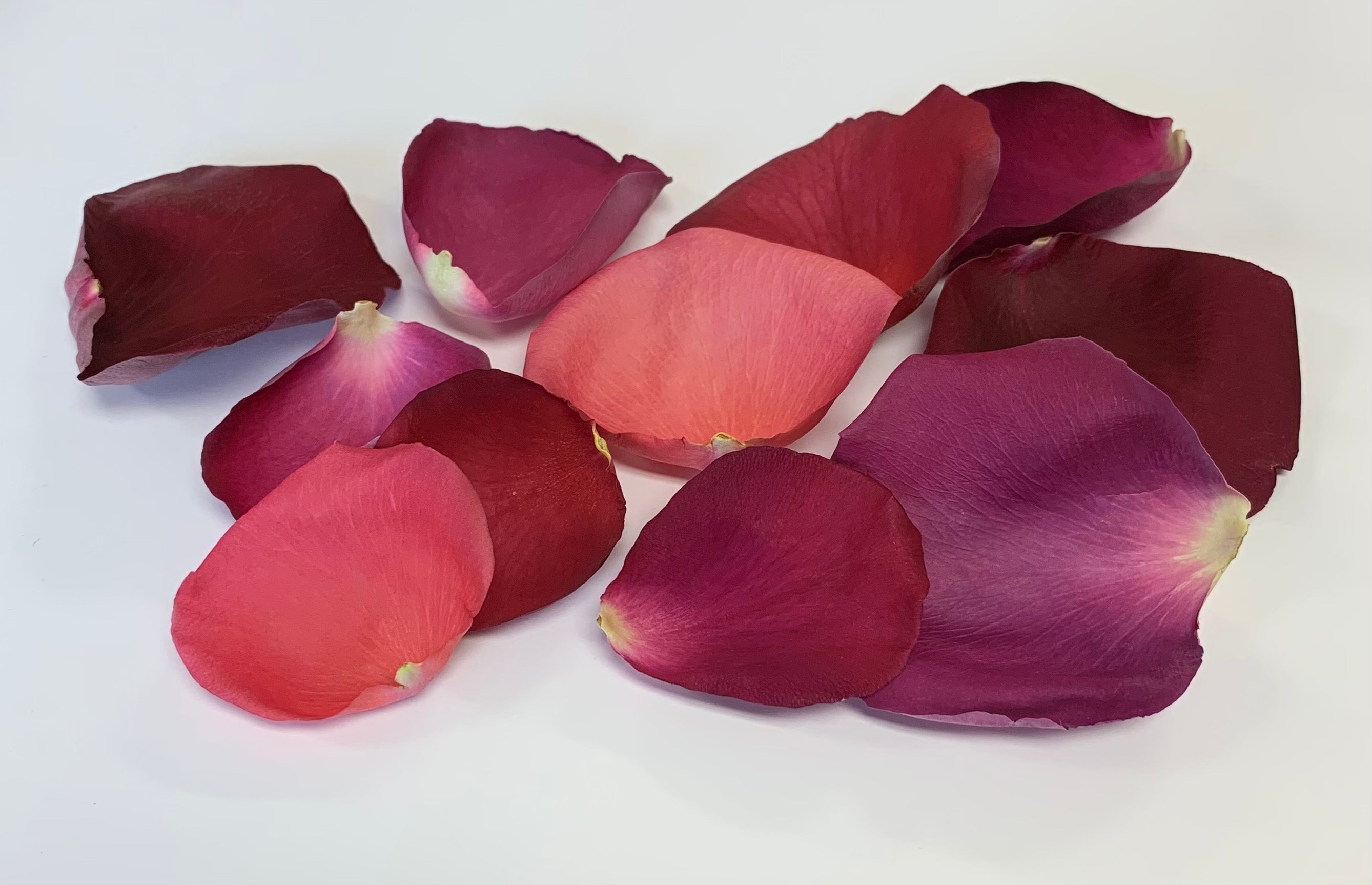 Our "Be Mine" Blend of freeze dried rose petals are REAL petals in a mix of pinks, reds, and purples.