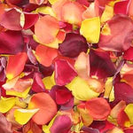 Our Harvest Blend of freeze dried rose petals are REAL petals in a mix of fall colors, such as burgundy, red, orange and yellow.