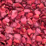 Romantic Red freeze dried rose petals are REAL petals that are perfectly preserved. Not a bright red, this color is a softer red, and some petals have a slight purple undertone. In low light, such as candlelight, the color is even more beautiful, hence the name Romantic Red.