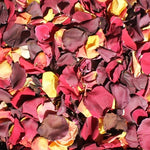 Decorating your wedding aisle with rose petals? Our Harvest Blend of Pathway Petals are just what you need. During both the "petaling" and packing processes, we carefully sort out the petals that have imperfections. The petals could have small rips or cracks in them, or color variation from the freeze drying process. In addition to small inner petals and greenish guard petals, these make up what we call Pathway Petals. While we don't recommend them for table decoration, they are ideal for aisles, where you need a lot of petals. Each bag contains 70 cups of rose petals.