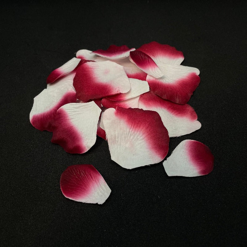 Our silk rose petals are our highest quality fabric petals, perfect for your wedding or special event. These petals are completely separated and loose in the bag, no need to spend hours pulling them apart. Use them to border an aisle runner, fill them into cones for tossing, or simply decorate tables with them. If you are not sure how many you need, we have suggestions below or email us for help: