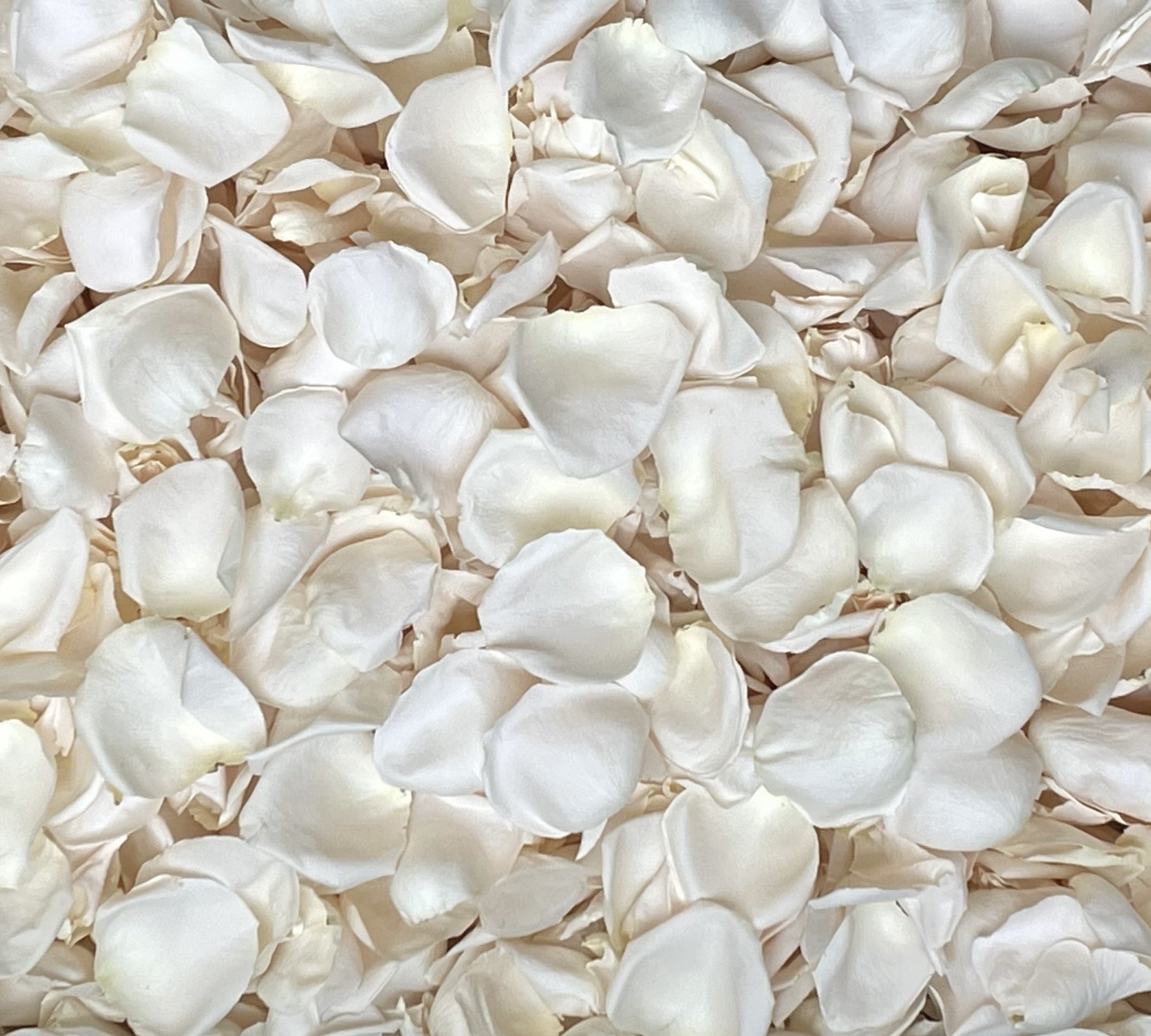 Our Freeze Dried Rose Petals are the absolute best you will find. Carefully handpicked from beautiful South American roses and preserved in our shop in upstate NY, our petals are even better than fresh. Non-wilting and non-staining, these biodegradable ivory rose petals are the most popular, by far!