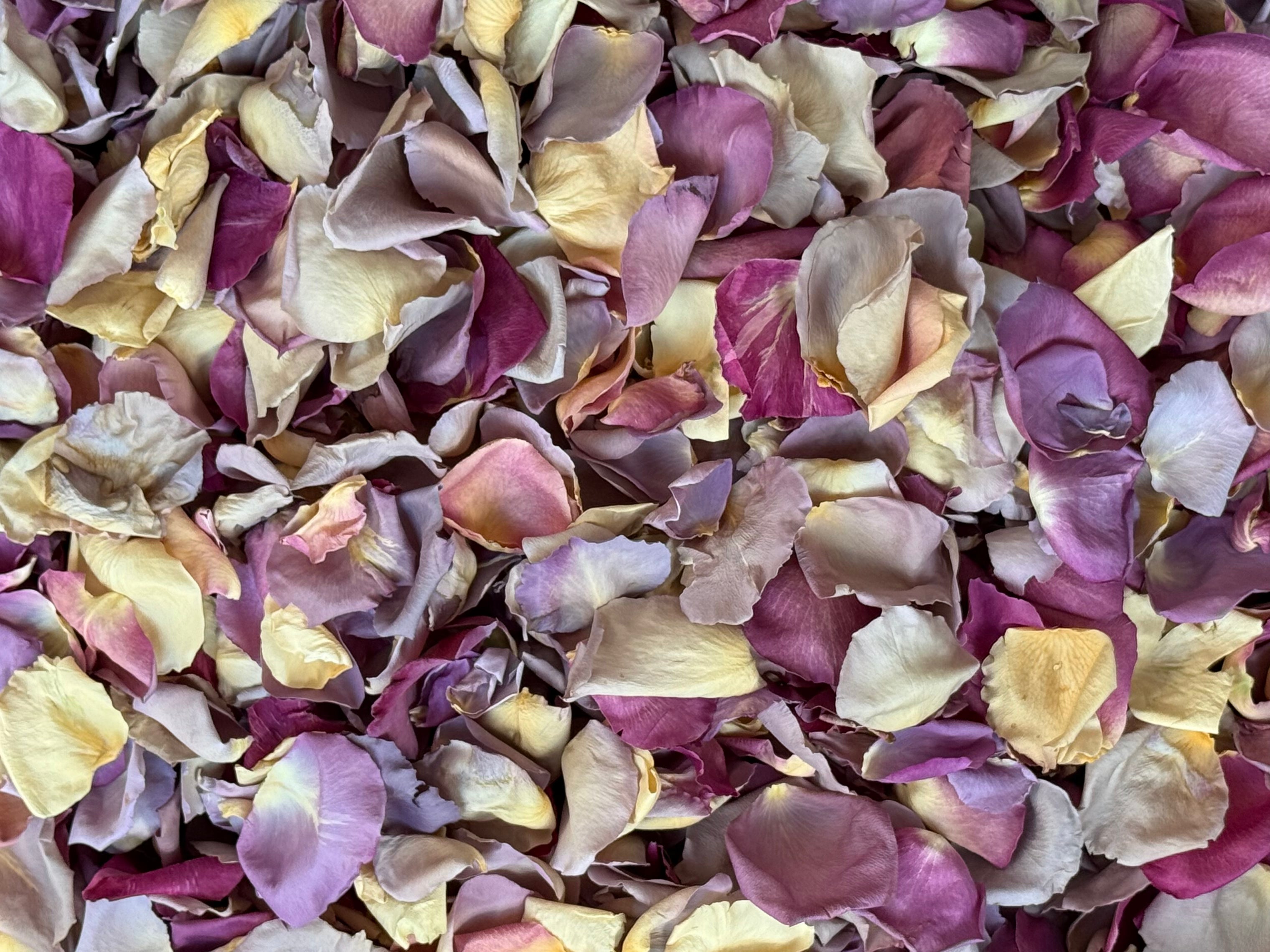 Our Pathway Petals are REAL freeze dried rose petals with slight imperfections, but are perfect for aisles! Each blend is unique based on the petals we have in stock. If you are looking for a specific blend, just email us and we will check our stock.