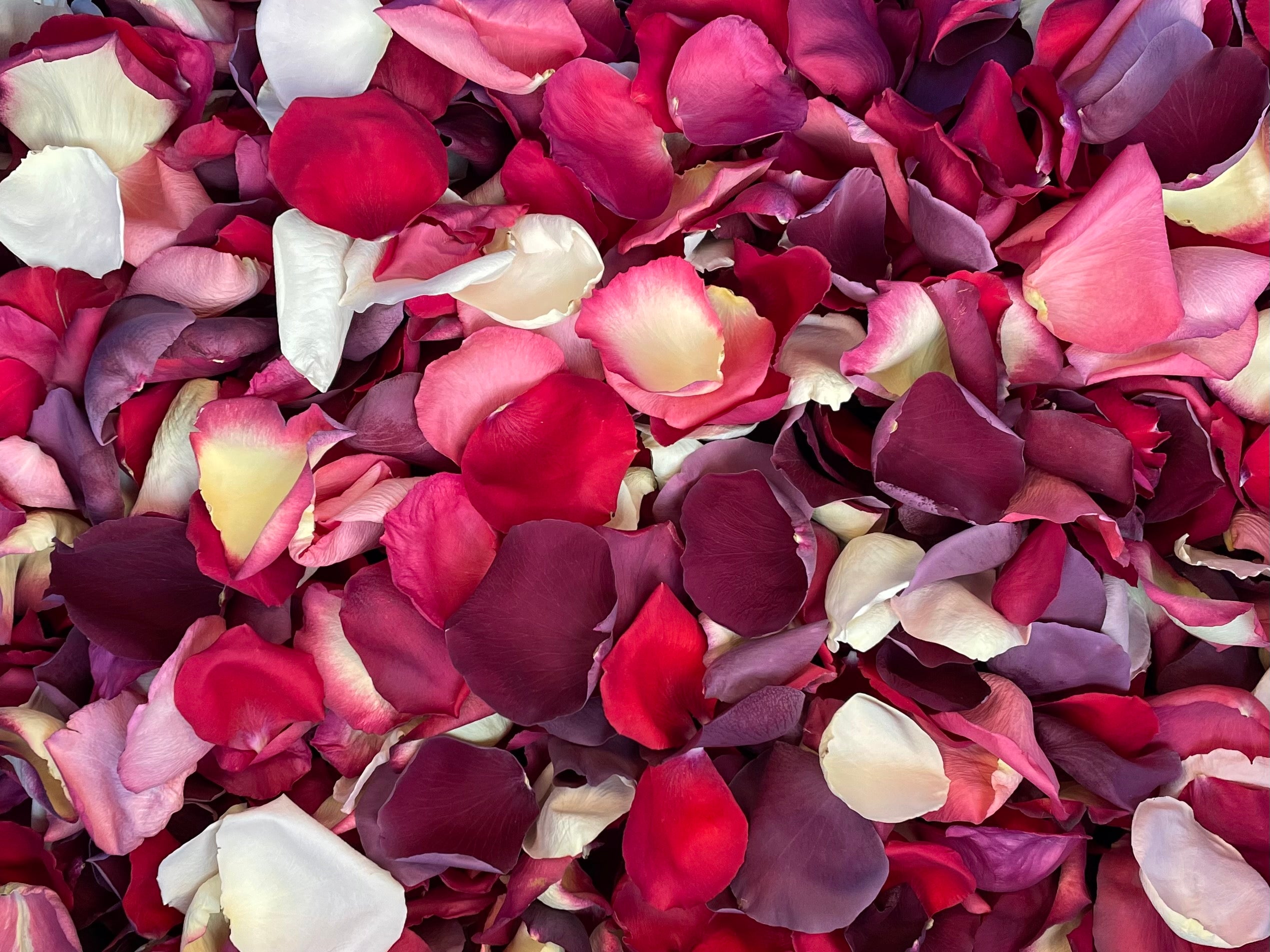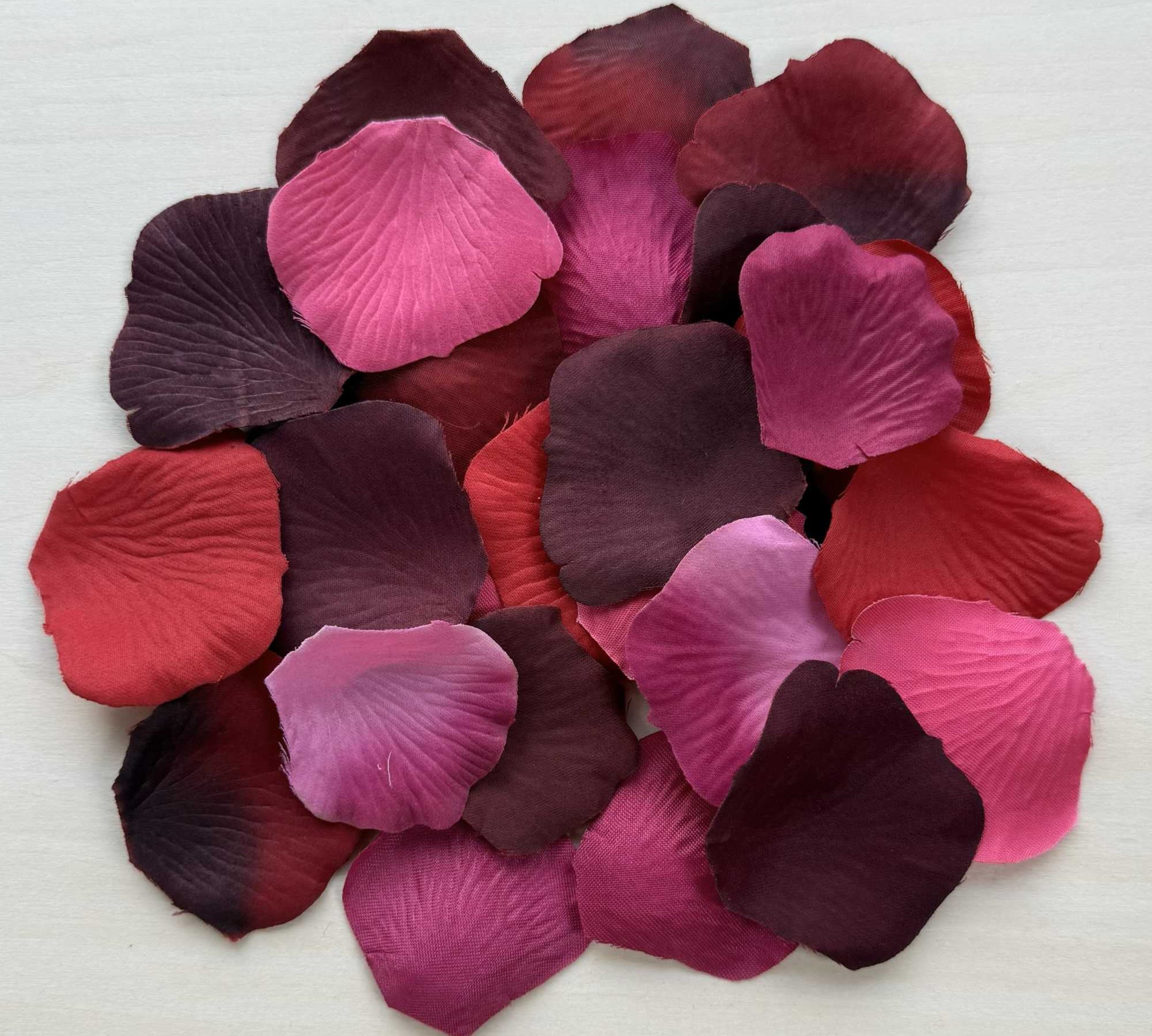 Some of our most popular colors of silk rose petals are available in bulk packs of 1,000 petals.