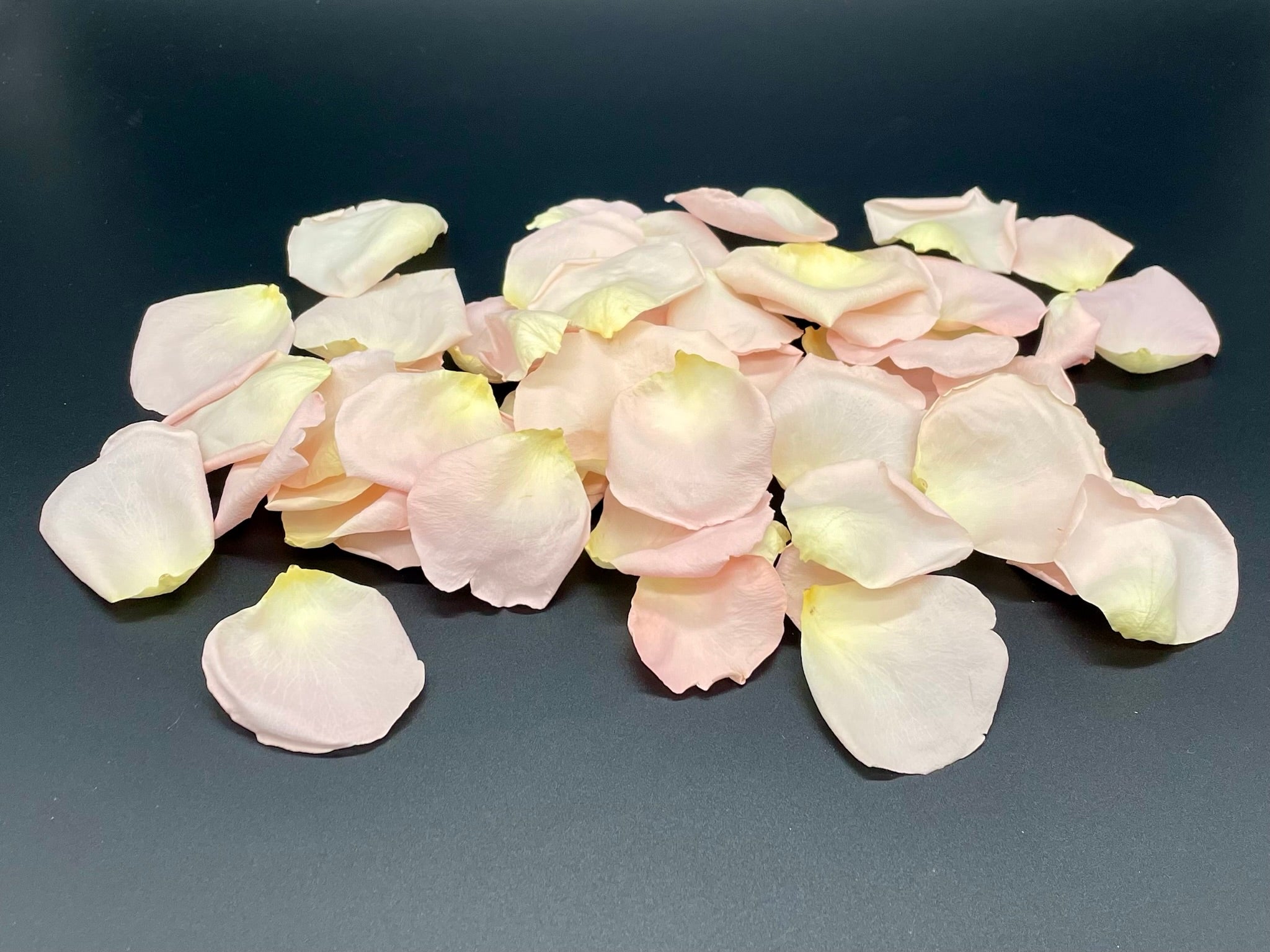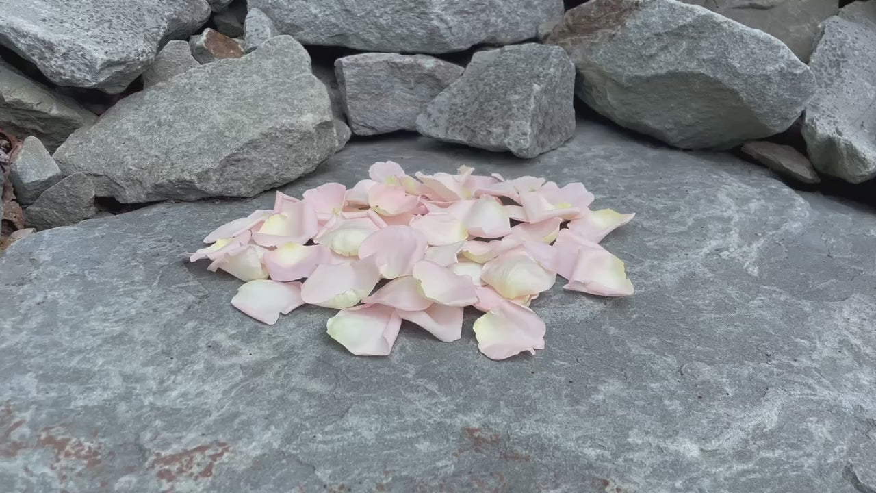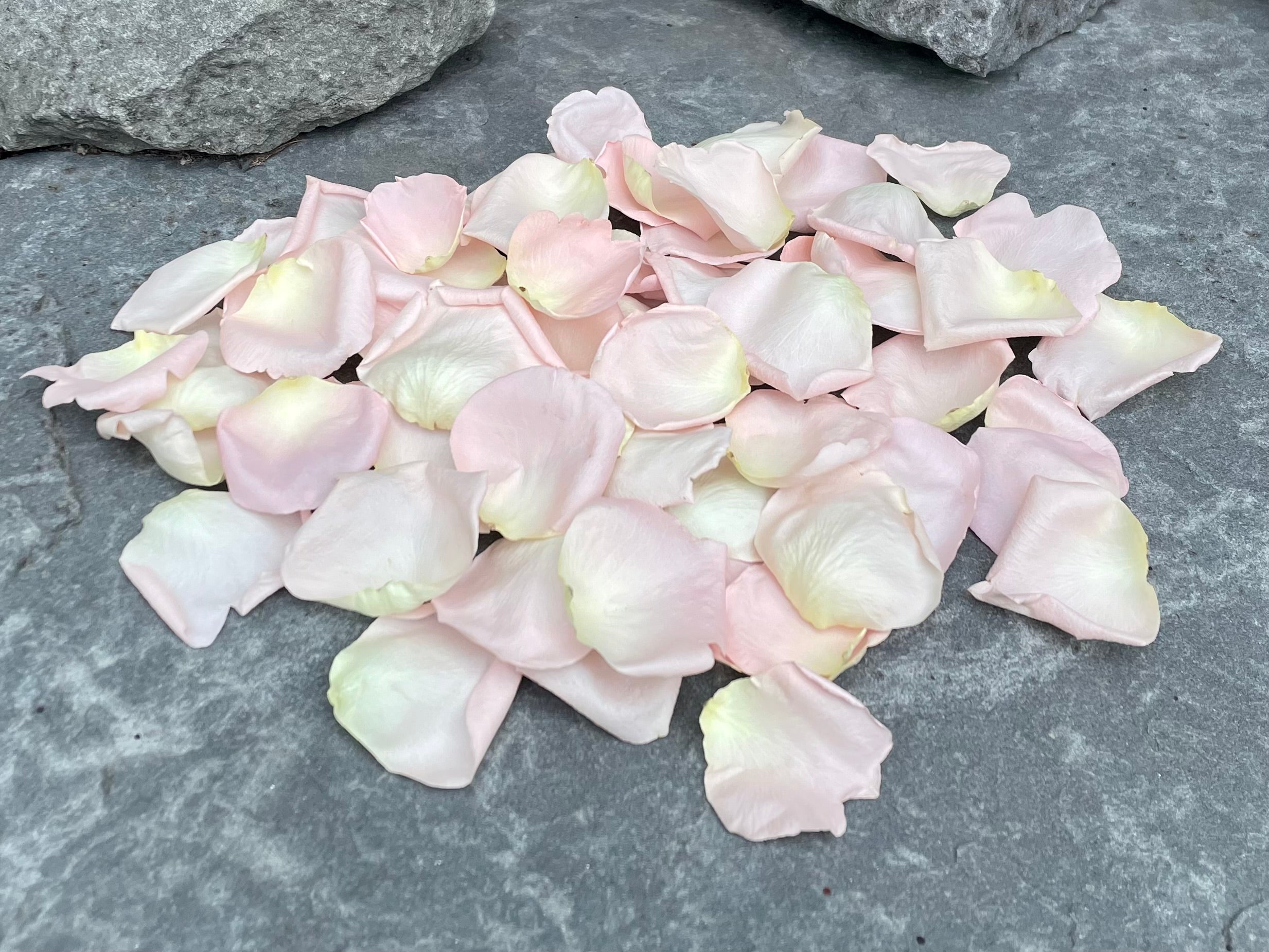 The perfect pale pink! Commonly blended with Ivory, our Blush rose petals give a soft, romantic look. This is one of the lightest pink freeze dried rose petals we carry.