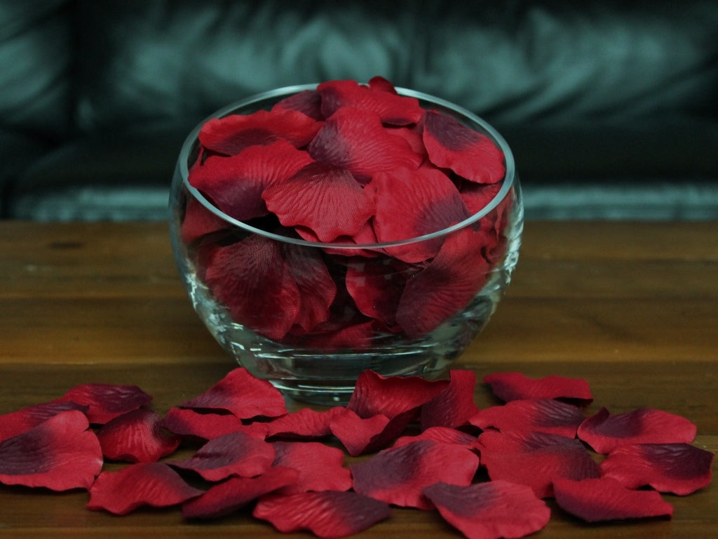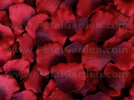 Our Burgundy floating petals have a dark red base, with a slightly lighter tip. These petals are the most similar to the color of a fresh red rose.