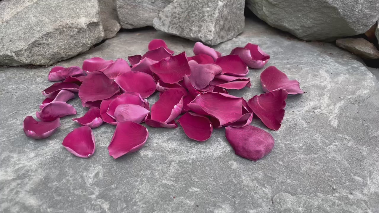 Burgundy freeze dried rose petals are REAL petals that are perfectly preserved.  We source the highest quality roses from Colombia and Ecuador, then freeze dry the rose petals in our shop in upstate New York.  Every order is custom packaged by hand, carefully sorting to only send you the best petals possible.