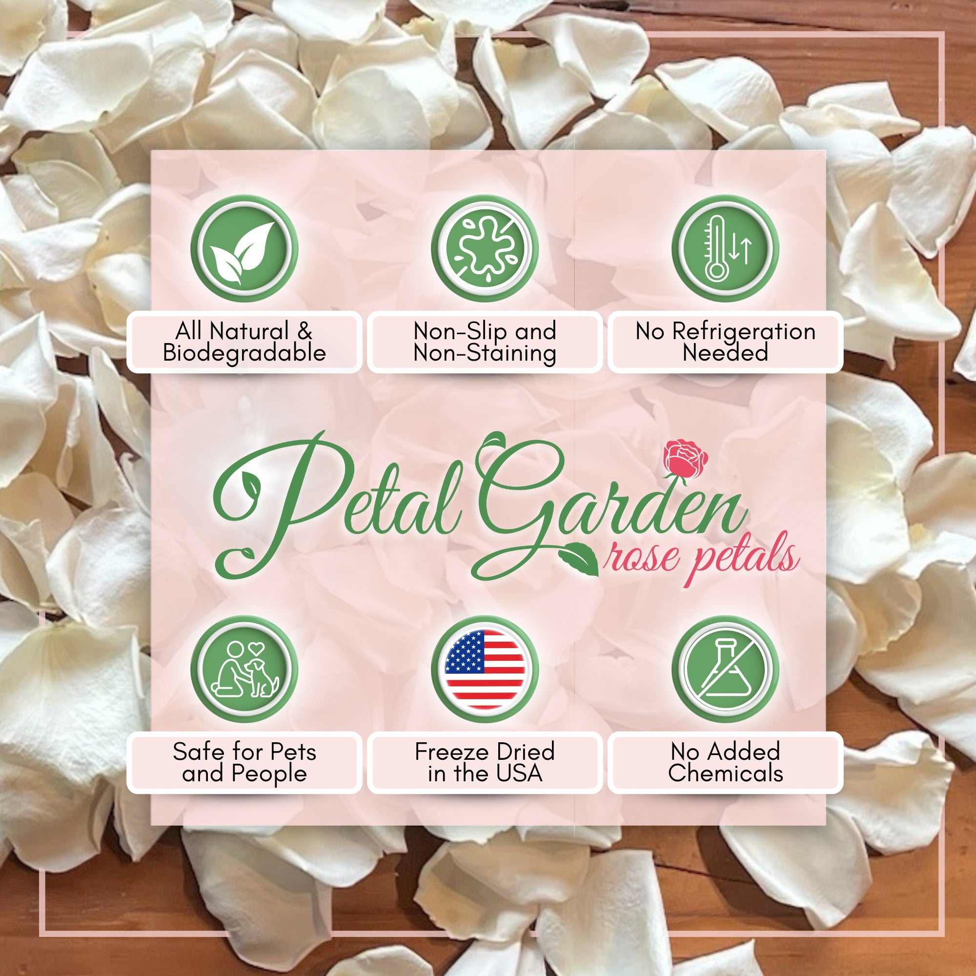 Our freeze dried rose petals are all-natural and completely biodegradable, so they are perfect for outdoor use.