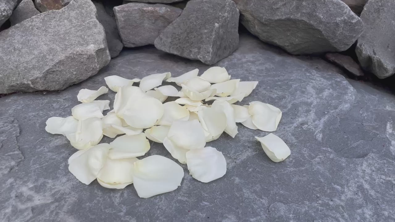 Ivory is our most popular wedding petal color. For a classic, timeless look - this is just the petal you need. Please note that this color is Ivory, as named, not white. If your wedding will have “white roses” though, then it is very likely your florist will be using the same rose that we use for our Ivory rose petals.