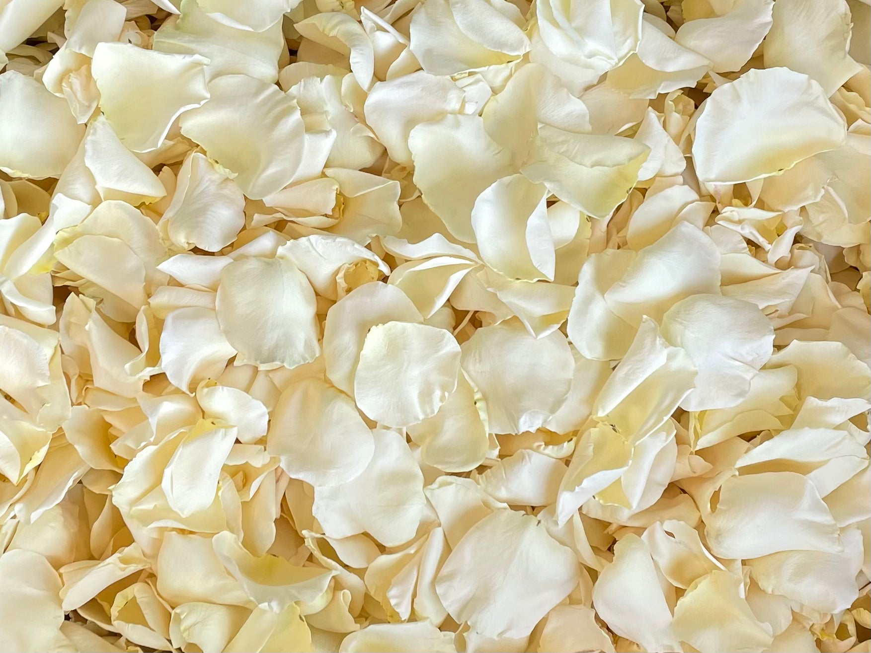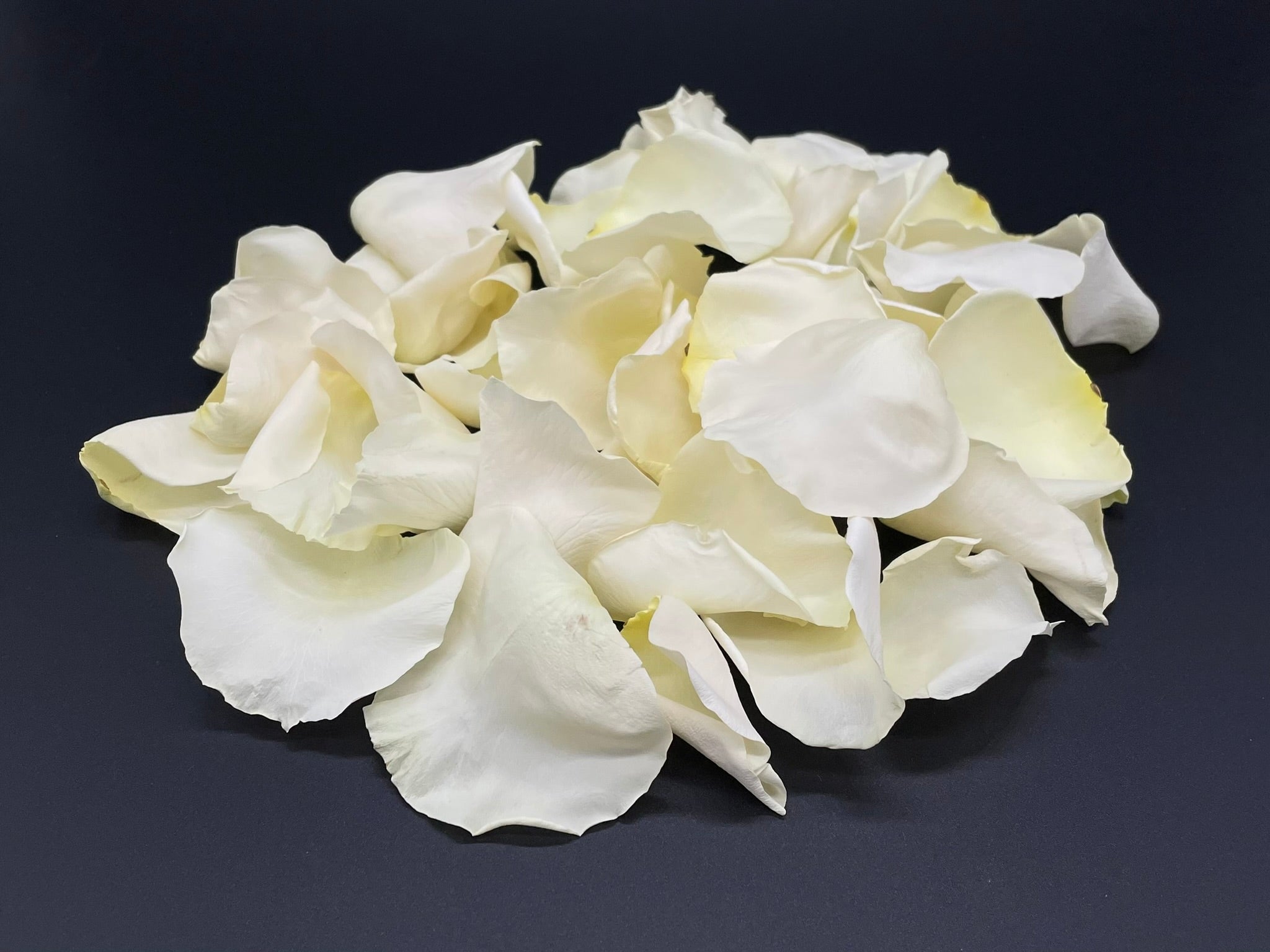 Our Lemonade freeze dried rose petals are a yellowish ivory. These are REAL petals that are perfectly preserved.  We source the highest quality roses from Colombia and Ecuador, then freeze dry the rose petals in our shop in upstate New York.  Every order is custom packaged by hand, carefully sorting to only send you the best petals possible.