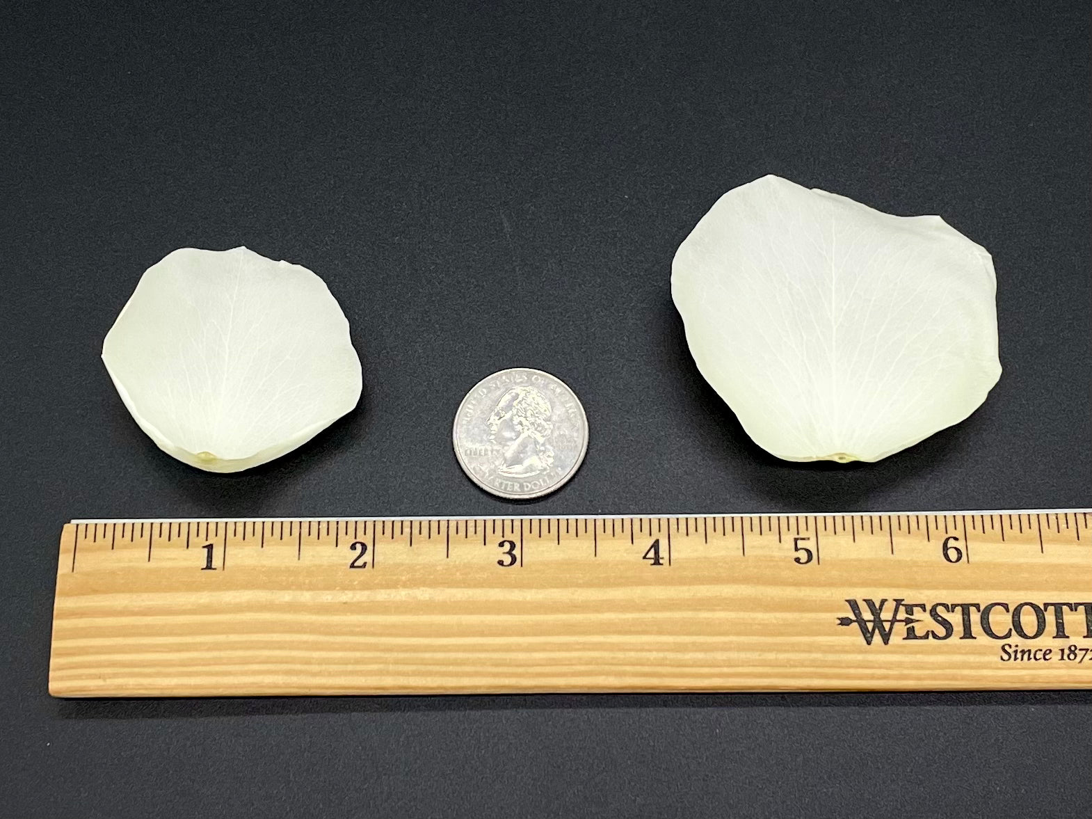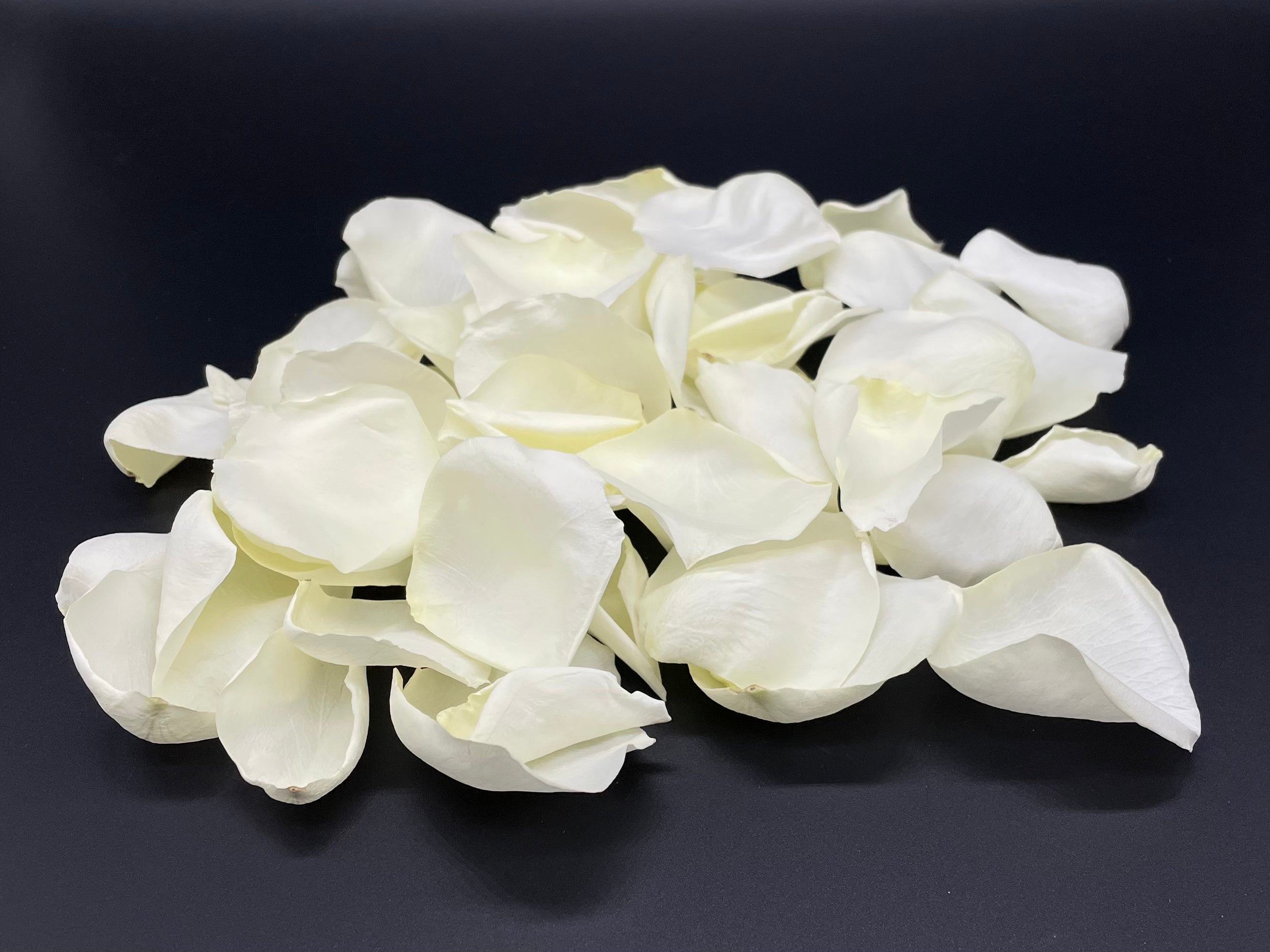 Our Moonlight freeze dried rose petals are a delicate ivory with a slight yellow tint. These are REAL petals that are perfectly preserved.  We source the highest quality roses from Colombia and Ecuador, then freeze dry the rose petals in our shop in upstate New York.  Every order is custom packaged by hand, carefully sorting to only send you the best petals possible.