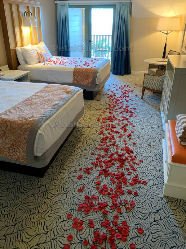 Our Silk Rose Petals are ideal for indoor settings (hotel, bedroom), while our Freeze Dried are biodegradable and perfect for outdoor settings.