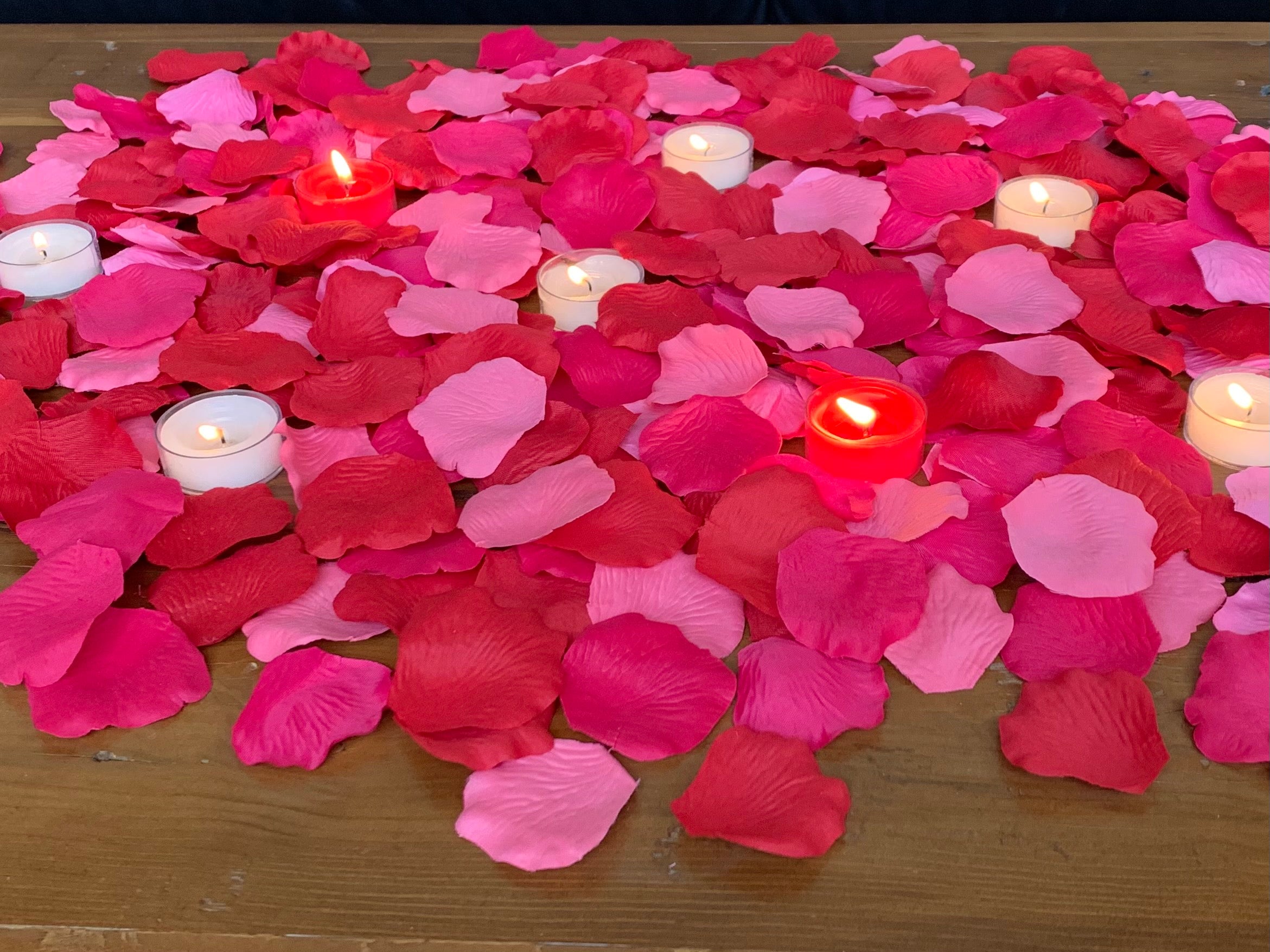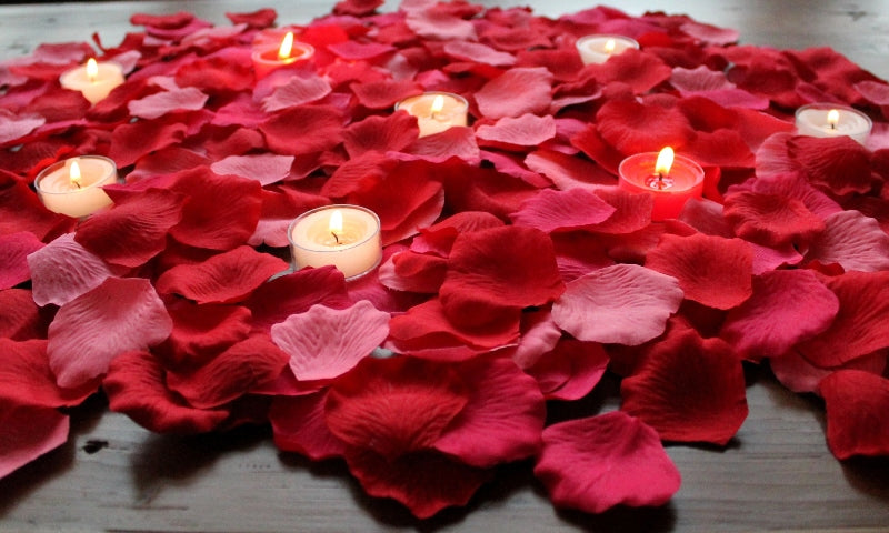 Romance 1000-Valentine Mix of Silk Rose Petals + candles