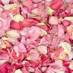 Decorating your wedding aisle with rose petals? Our special blend of shades of Pink Pathway Petals are just what you need. During both the "petaling" and packing processes, we carefully sort out the petals that have imperfections. The petals could have small rips or cracks in them, or color variation from the freeze drying process. In addition to small inner petals and greenish guard petals, these make up what we call Pathway Petals. While we don't recommend them for table decoration, they are ideal for aisles, where you need a lot of petals. Each bag contains 70 cups of rose petals.