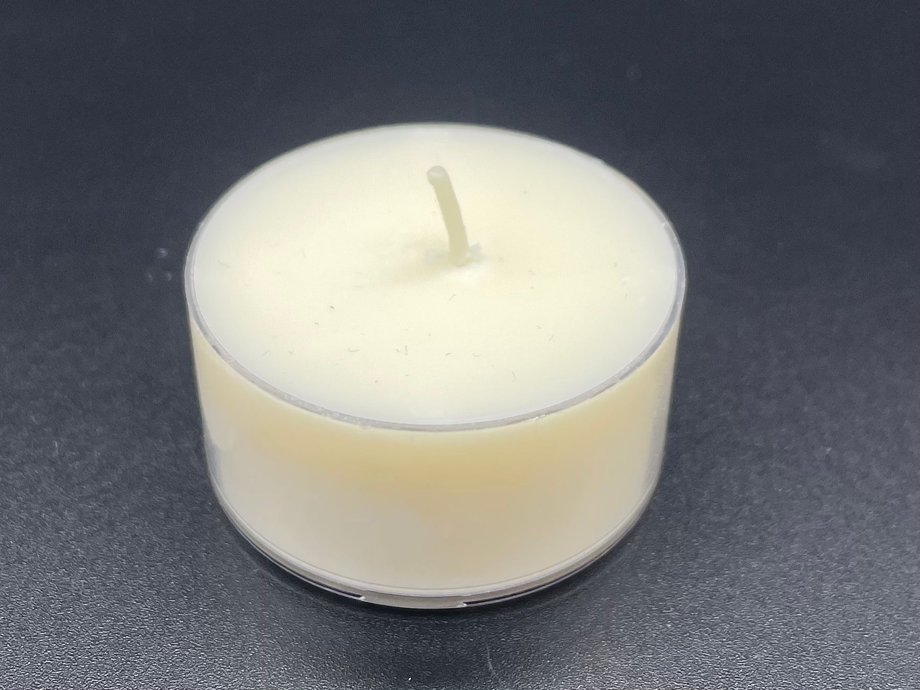Handmade soy tealight candle with a rose petal scent. These are made in the USA at a soy farm and have a very clean burn. No dye is added, so they are their natural ivory color.