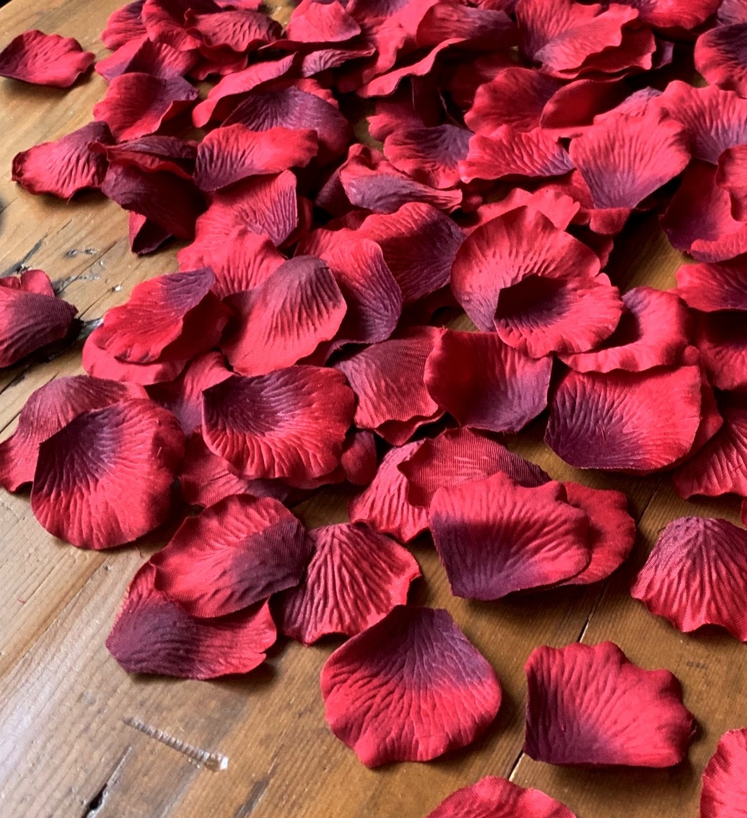 Our silk rose petals are made from a high quality micro-peach material to look as realistic as possible. We now include handmade soy tealight candles with a realistic rose scent.