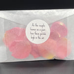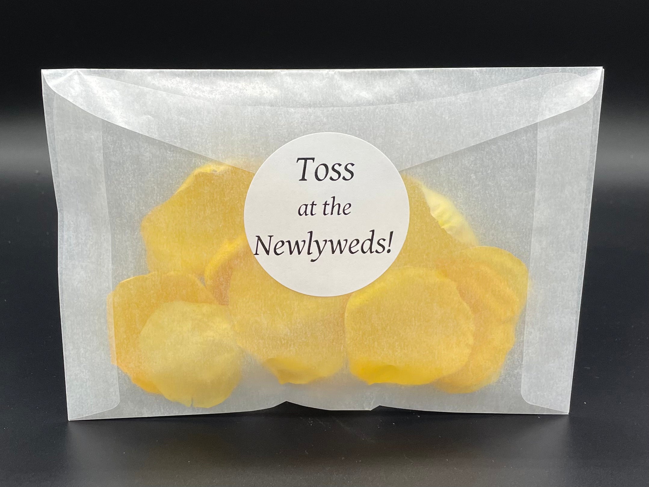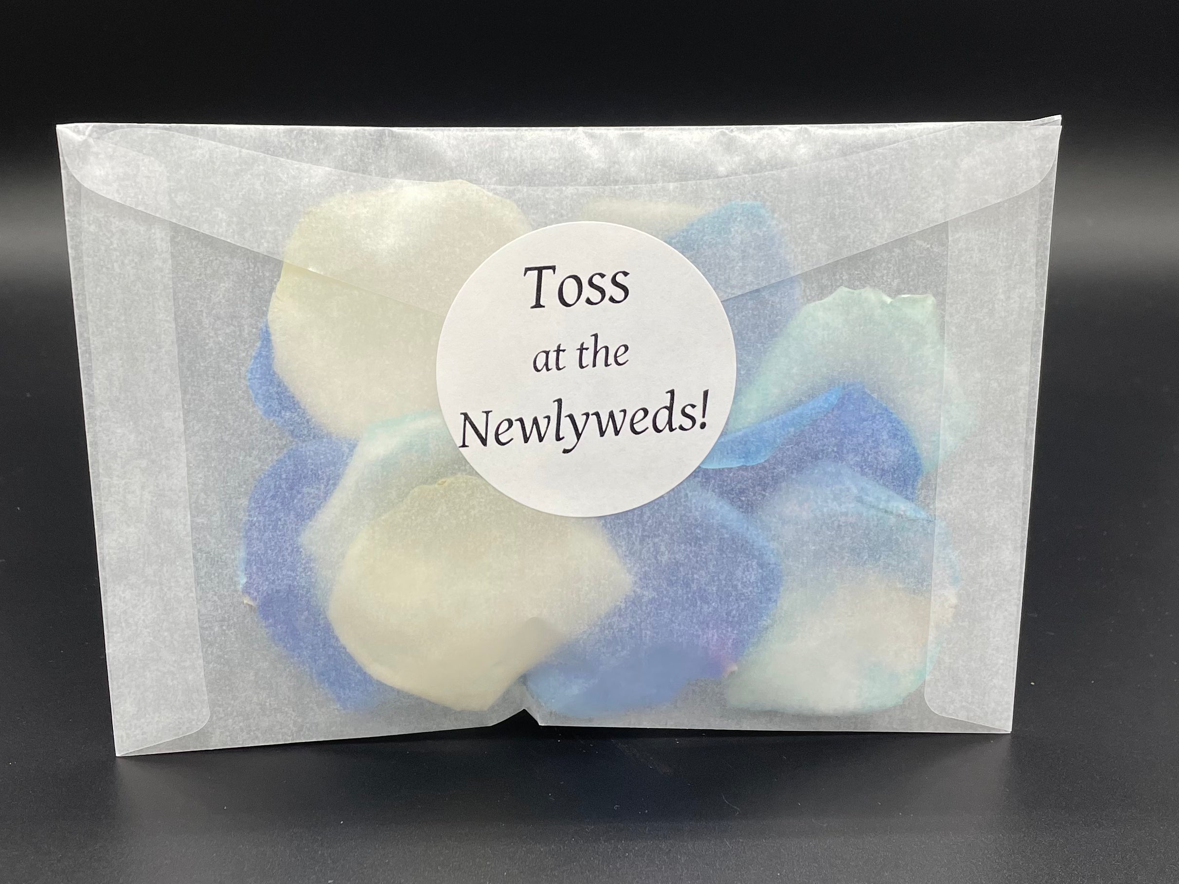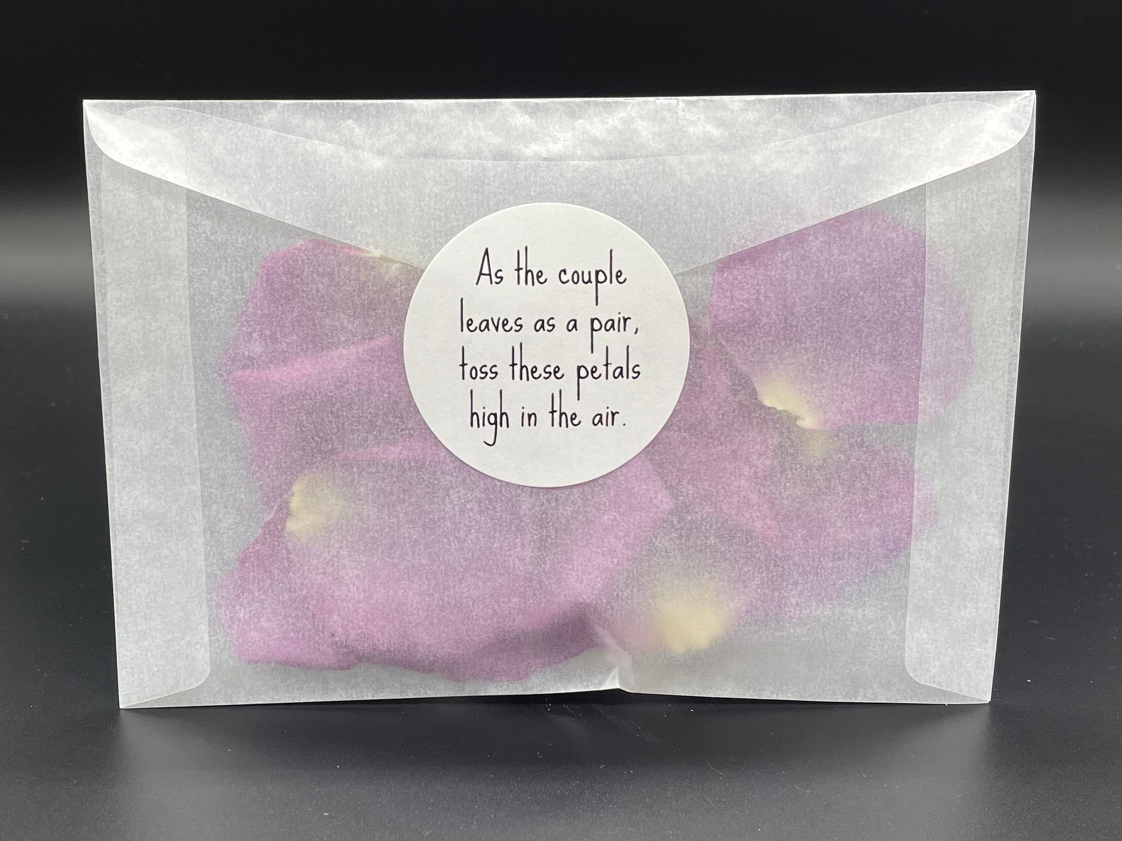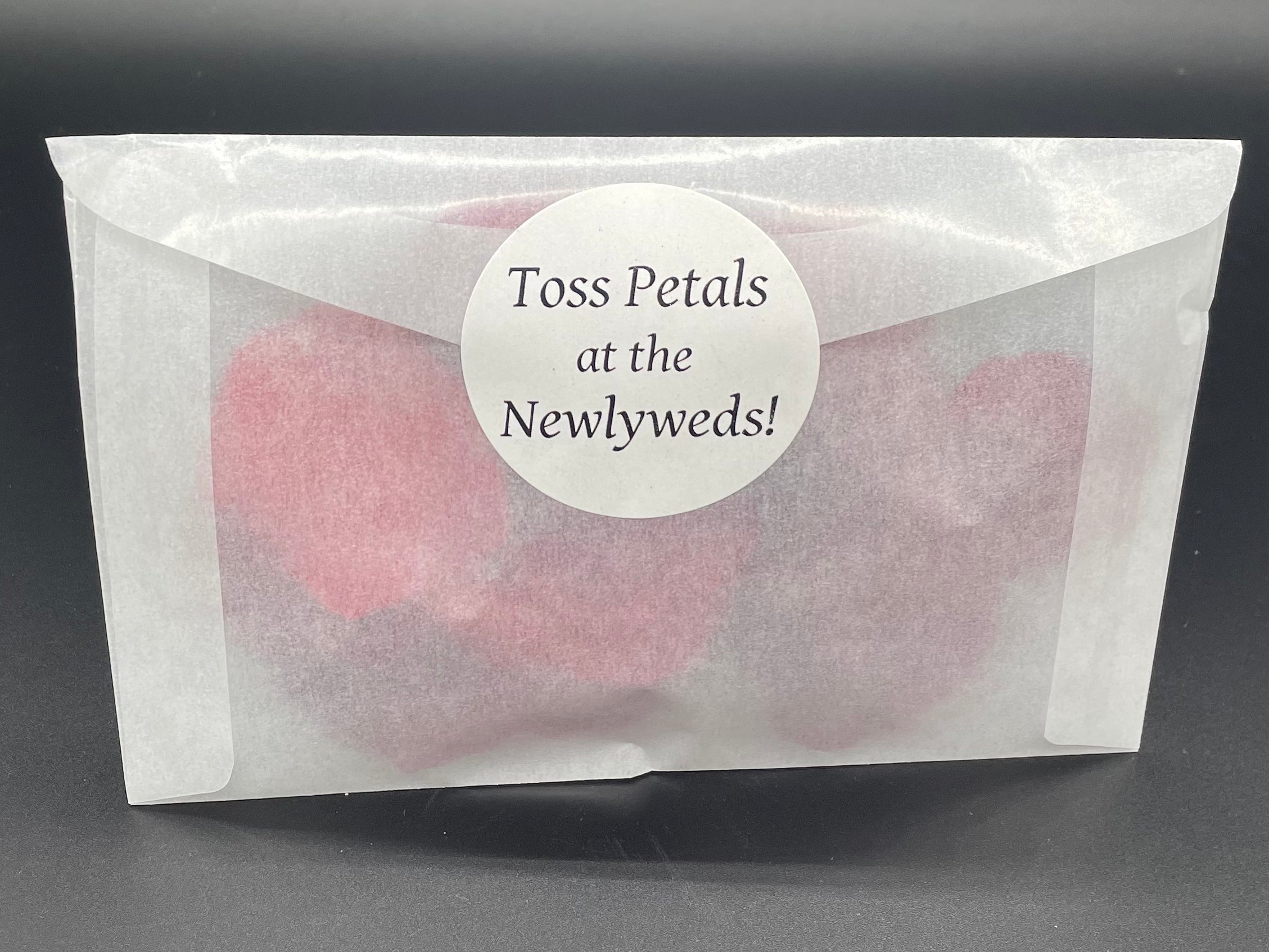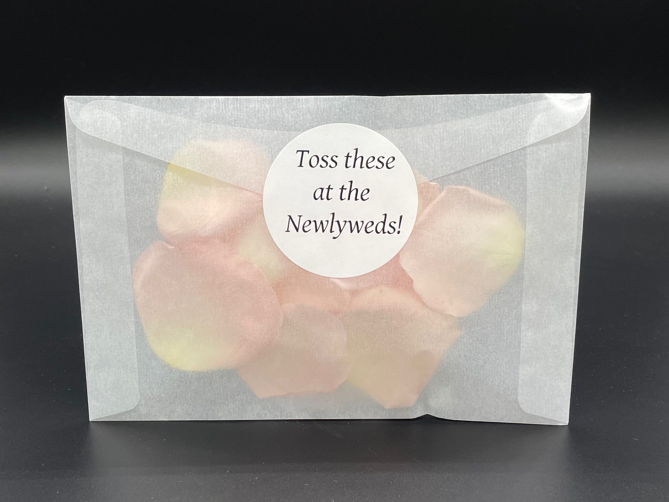 Temporarily unavailable - Due to high demand for our rose petals and limited time to custom make these, our completed toss packets are currently unavailable. You can, however, easily put them together yourself by ordering the petals separately and order envelopes here.
